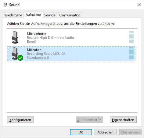 und wählen dort Aufnahmegeräte.
