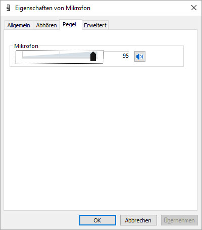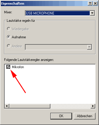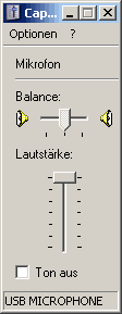 Mit OK bestätigen, es öffnet sich Lautstärkeregler für USB Mikrofon